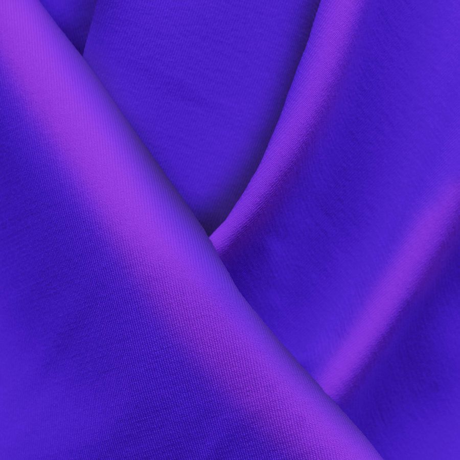 La tela base es la Lycra Reciclada - Seal de 230 gr/m2 con composición de 75% Poliéster y 25% Elastano, con un ancho de 150 cm. El color liso impreso es de un Morado o Púrpura Han, con una combinación de tintas de 86 de Cyan y 77 de Magenta, y un CMYK de 86 77 0 0. Este color secundario simboliza la personalidad creativa y emocional del individuo, mientras técnicamente destaca por su tonalidad vibrante e intensa. Se combina perfectamente con colores claros y brillantes como el blanco, amarillo o naranja.