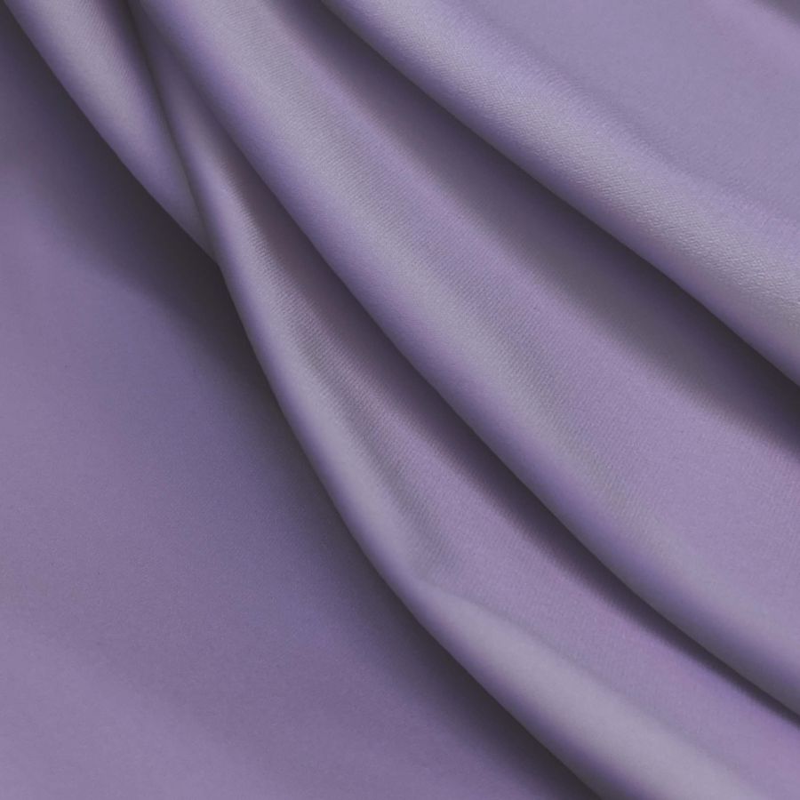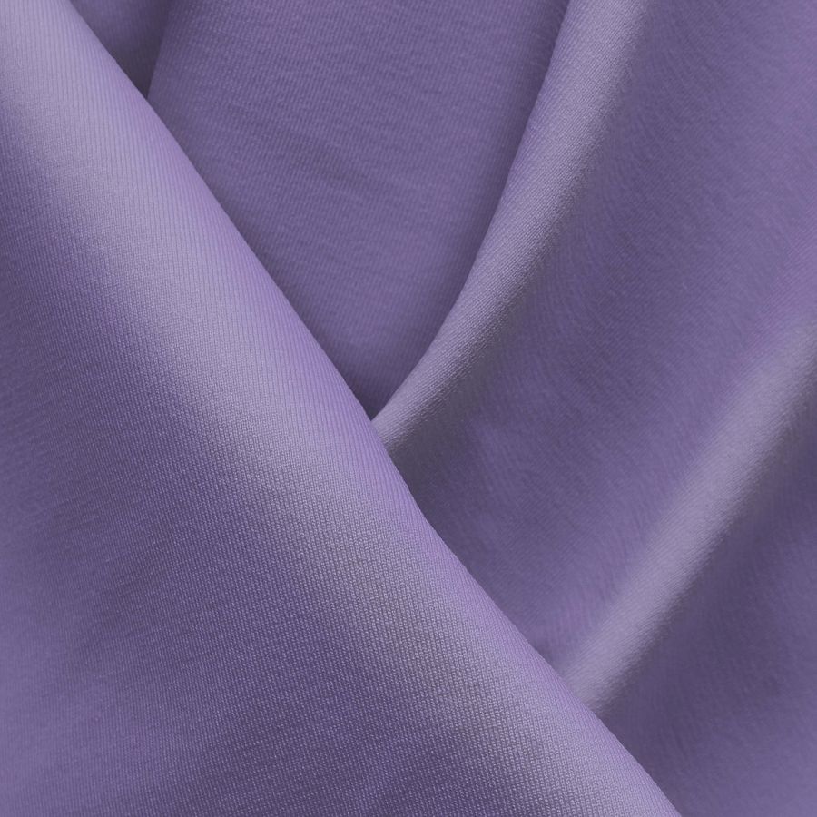La tela base, Lycra Reciclada - Seal de 230 gr/m2, es una tela elástica y resistente, compuesta por 75% de poliéster y 25% de elastano. Tiene un gramaje de 230 gr/m2 y un ancho de 150 cm. El color liso impreso en esta tela es un tono de morado o púrpura pastel ligero, cuyo CMYK es de 36 42 0 0. Este color se combina perfectamente con tonos suaves como el rosa, lila, amarillo y verde claro.
