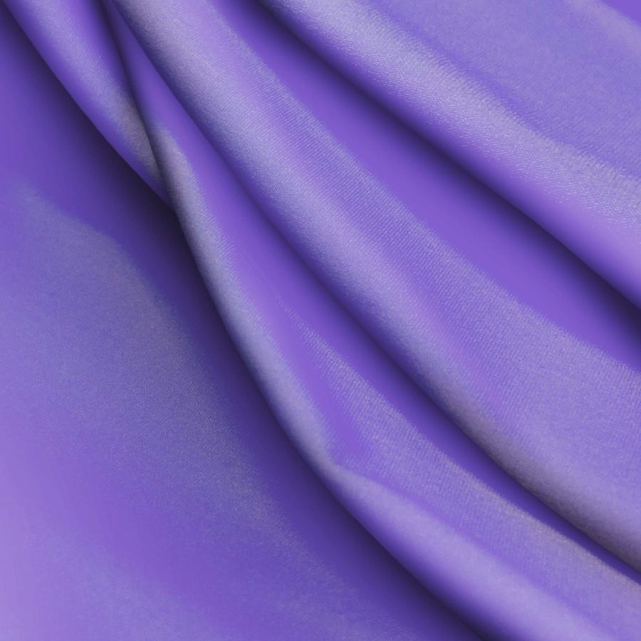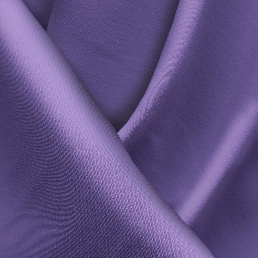 La tela base es la Lycra Reciclada - Seal de 230 gr/m2. El color liso impreso es Morado Ultravioleta, con una tinta Cyan de 72, una tinta Magenta de 73, una tinta Yellow de 11 y una tinta Black de 1. Este color se combina especialmente bien con azules y grises. La tela está impresa con el color liso en una sola cara por impresión digital textil, lo que le da una gran viveza y nitidez.