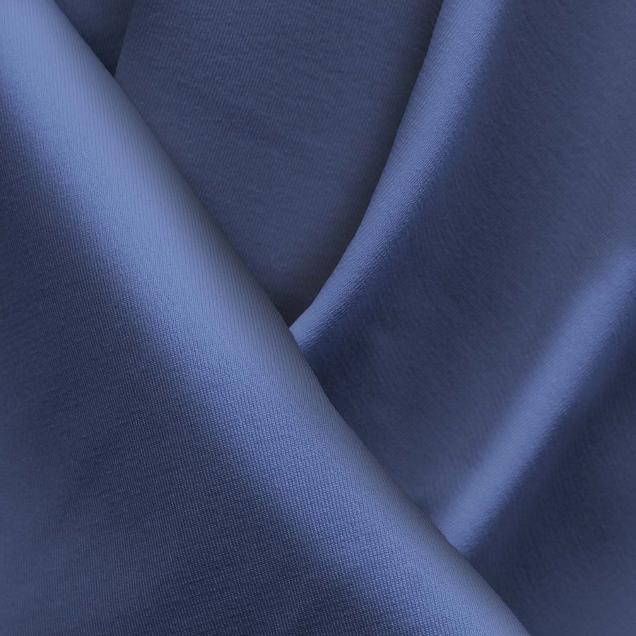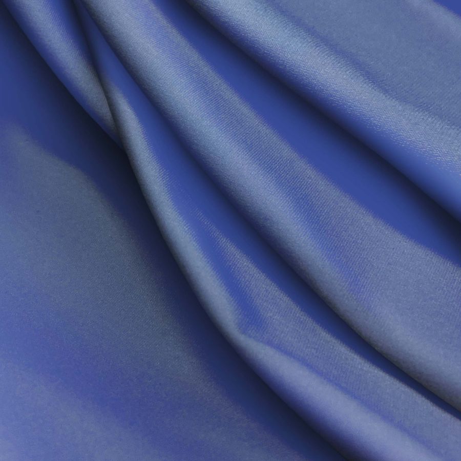 La tela base es Lycra reciclada de 230 gr/m2, con una composición de 75% poliéster y 25% elastano. La tela tiene un gramaje de 230 gr/m2 y un ancho de 150 cm. El color liso impreso es un tono morado/violeta de Parma, cuyo contenido CMYK es de 85 71 32 18. Este color se caracteriza por su elegancia y sofisticación, y combina fácilmente con tonos tierra y grises.