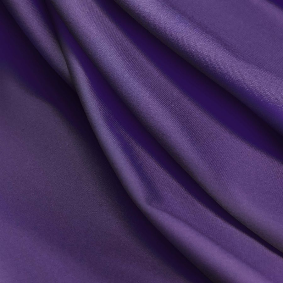 La lycra reciclada - Seal de 230 gr/m2 es una tela de composición 75% poliéster y 25% elastano, de color liso impreso en un tono morado-violeta ruso con un CMYK de 94 100 34 36. Esta tela tiene una textura elástica y resistente al cloro, con protección UV muy alta 50+. Es impresa con el color liso a una sola cara por impresión digital textil.