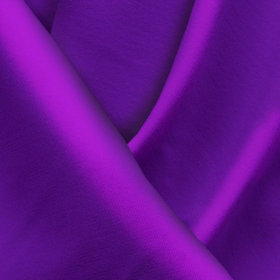 La tela base de este tejido es una Lycra Reciclada de 230 gr/m2 con una composición de 75% poliéster y 25% elastano, con un ancho de 150 cm. El color liso impreso es un morado/violeta sólido con un CMYK de 80 95 0 0. Este color es intenso y se combina perfectamente con el rosa, fucsia, azul oscuro y negro. Es importante mencionar que la tela está impresa con el color liso a una sola cara por impresión digital textil, lo cual proporciona un acabado óptimo y de gran calidad.