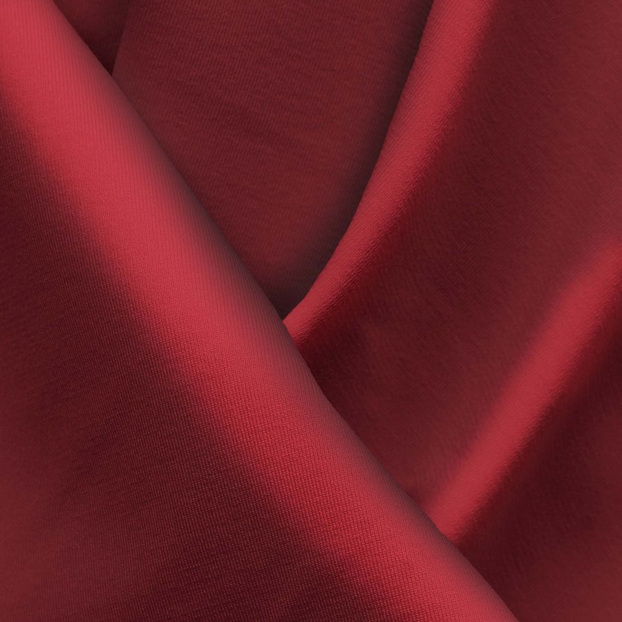 La tela base es la Lycra Reciclada - Seal de 230 gr/m², una lycra compuesta por 75% poliéster y 25% elastano. El color liso impreso es Morado Rojo Púrpura, con un CMYK de 32 100 79 46. Este color secundario es intenso y vibrante, asociado al lujo y al poder, y combina bien con tonos análogos como el rojo oscuro y el magenta, así como con tonos complementarios como el verde y el amarillo. Cabe destacar que la tela está impresa con el color liso a una sola cara por impresión digital textil, lo que proporciona una gran claridad y detalles nítidos.