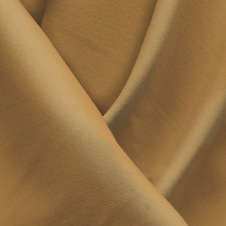 La tela base de este tejido es Lycra reciclada - Seal de 230 gr/m2, compuesta por un 75% de poliéster y un 25% de elastano. Su color liso impreso presenta un tono naranja-dorado con un CMYK de 10 34 65 1. Este color secundario aporta una sensación de energía y optimismo, generando una conexión con la naturaleza y el sol. Además, combina perfectamente con colores como blanco, negro, verde y azul, logrando composiciones vibrantes y tropicales. Es importante destacar que este tejido está impreso con el color liso a una sola cara por impresión digital textil, lo que permite una gran precisión en la imagen.