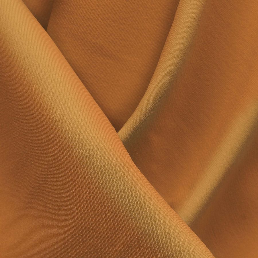 La tela base es Lycra Reciclada - Seal de 230 gr/m2, una lycra compuesta por un 75% de poliéster y un 25% de elastano, con un gramaje de 230 gr/m2 y un ancho de 150 cm. Su color liso impreso es de un naranja vibrante llamado Mango Tango con un contenido de CMYK de 0 49 73 0. Este color secundario de tonalidad cálida simboliza la energía y vitalidad, destacando por su tono alegre y desenfadado. Además, el color Mango Tango combina perfectamente con tonos neutros como el blanco o el gris para darle un toque fresco y moderno a cualquier diseño.