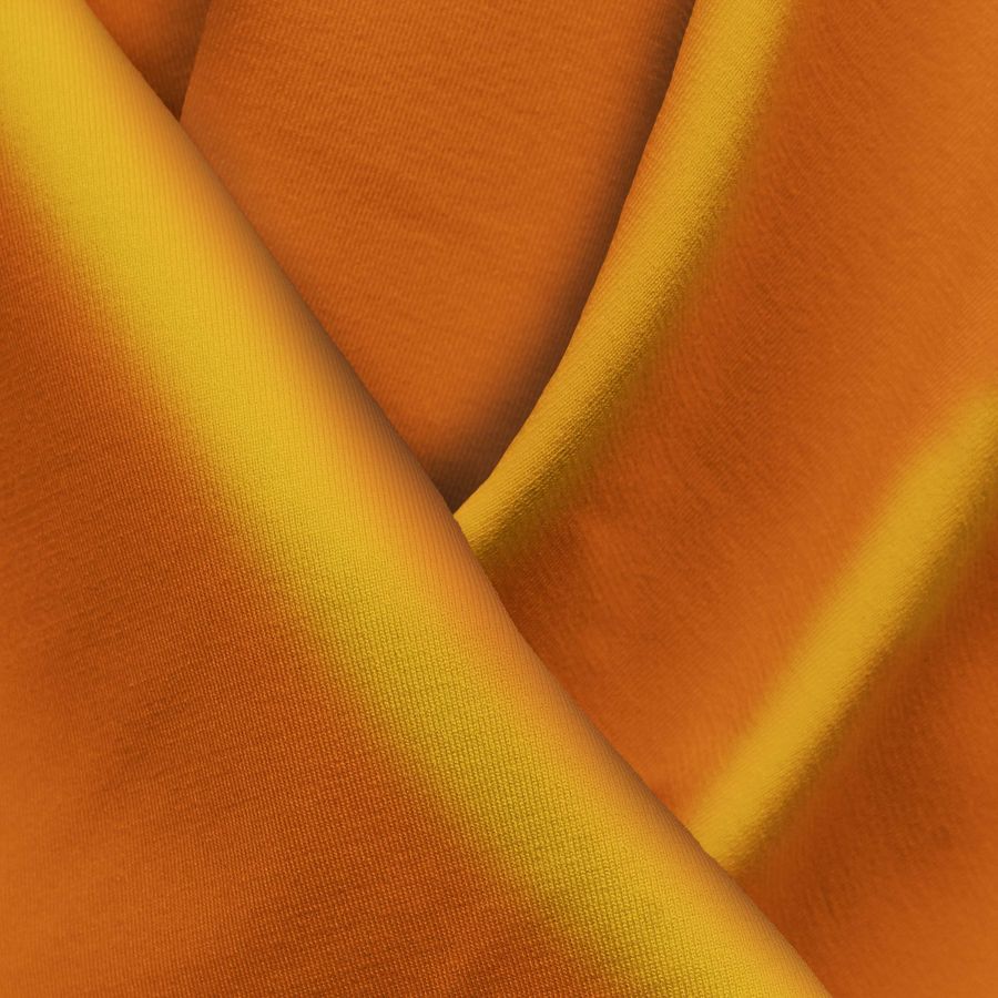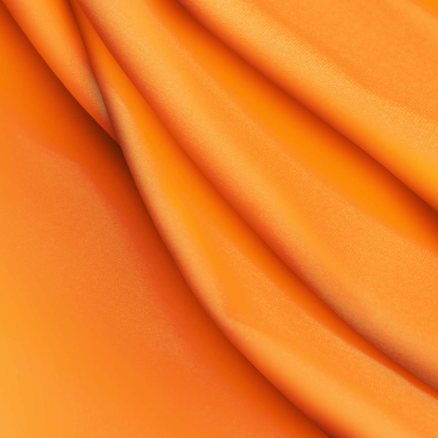 La tela base es Lycra Reciclada - Seal de 230 gr/m2, de composición 75% POLIÉSTER y 25% ELASTANO, con un gramaje de 230 gr/m2 y un ancho de 150 cm. El color liso impreso es Naranja Aeroespacial, con un CMYK de 0 69 100 0. Este color es vibrante y atrevido, y combina especialmente bien con colores neutros como el blanco, negro y gris, así como con tonos similares al rojo y al amarillo.