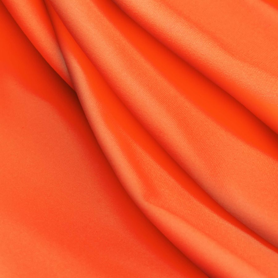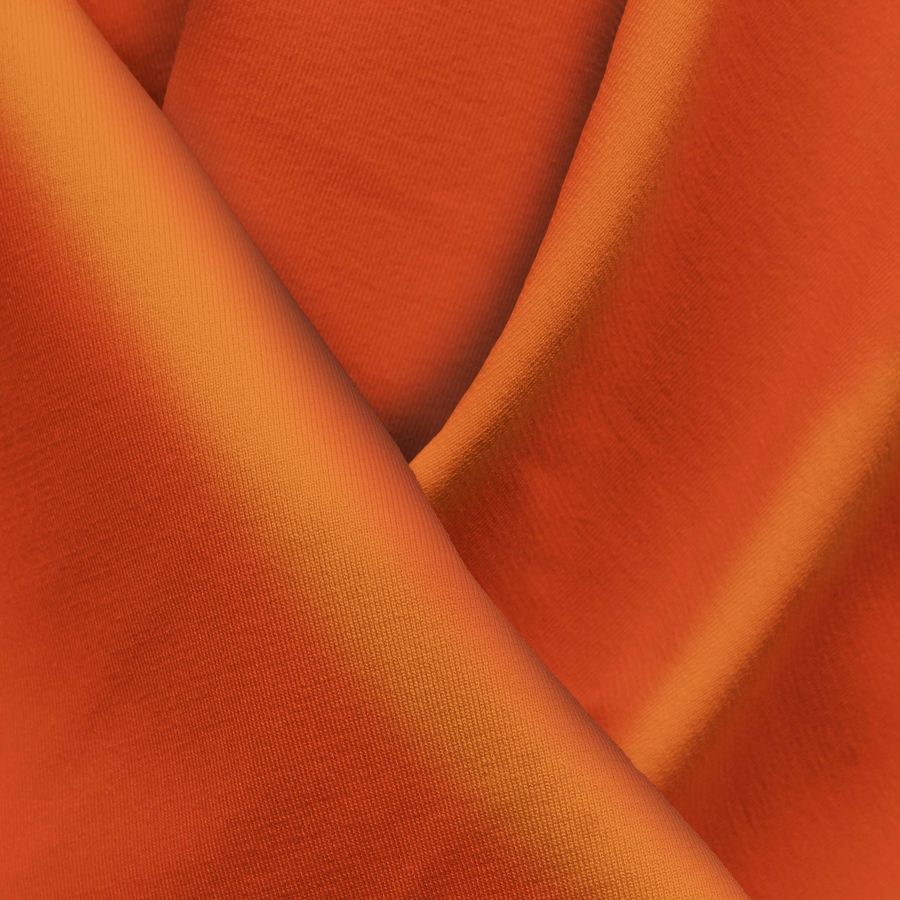 La tela base Lycra Reciclada - Seal de 230 gr/m2, de composición 75% poliéster y 25% elastano, presenta un color liso impreso en tono Naranja Puro con un CMYK de 0 82 94 0. Este color secundario es una mezcla vibrante de tonos cálidos, que evoca la energía y la vitalidad del verano. Combina especialmente bien con tonos neutros como el blanco, el negro y el gris, así como con otros pasteles y tonalidades de naranja.