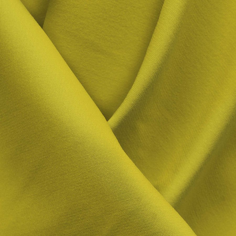 La tela base de este tejido es la Lycra Reciclada - Seal, con un gramaje de 230 gr/m2 y ancho de 150 cm. Su composición es de un 75% de poliéster y un 25% de elastano, lo que le confiere una gran elasticidad y resistencia a la deformación. La tela base tiene un acabado resistente al cloro y un factor de protección UPF muy alto de 50+. En cuanto al color impreso, este presenta una tonalidad amarillo-azufre, tal y como se desprende de los valores CMYK: 10 para cyan y 6 para magenta, combinados con un 84 para el color amarillo y un 0 para el negro.