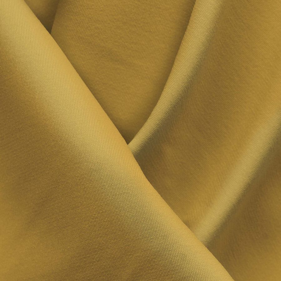 La tela base de este tejido es la Lycra Reciclada - Seal de 230 gr/m2, una tela elástica, texturizada y resistente al cloro. Su composición del 75% de poliéster y 25% de elastano, la hacen una tela de alta calidad y durabilidad. El ancho de la tela es de 150 cm, y su gramaje es de 230 gr/m2. El color liso impreso es de un tono amarillo mimosa, cuyo CMYK es 6 26 72 0, el cual es brillante y vibrante, aportando energía y luminosidad. Este hermoso color combina particularmente con tonos tierra y verdes claros, logrando una armonía natural y balanceada. Es importante mencionar que el tejido está impreso con el color liso a una sola cara por impresión digital textil, lo que significa que la tinta penetra la tela y no queda en la superficie, logrando que su durabilidad sea mayor.