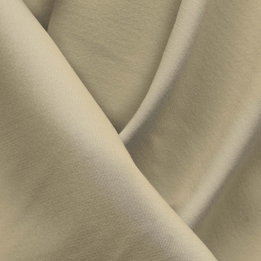 La tela base es una Lycra Reciclada - Seal de 230 gr/m2, con una composición de 75% poliéster y 25% elastano y un ancho de 150 cm. La impresión del color liso sobre este tejido se presenta en un hermoso tono amarillo vainilla, que se logra mediante una combinación de las tintas cian, magenta y amarilla con el valor CMYK de 3 8 32 0. Este color proporciona una apariencia fresca y atractiva, que transmite una sensación de alegría y energía. El color vainilla del amarillo impreso complementa muy bien con el negro, el gris y el marrón, creando una armonía elegante y moderna.