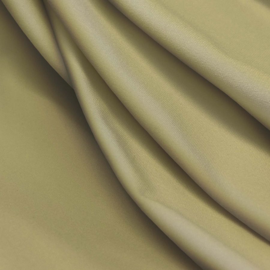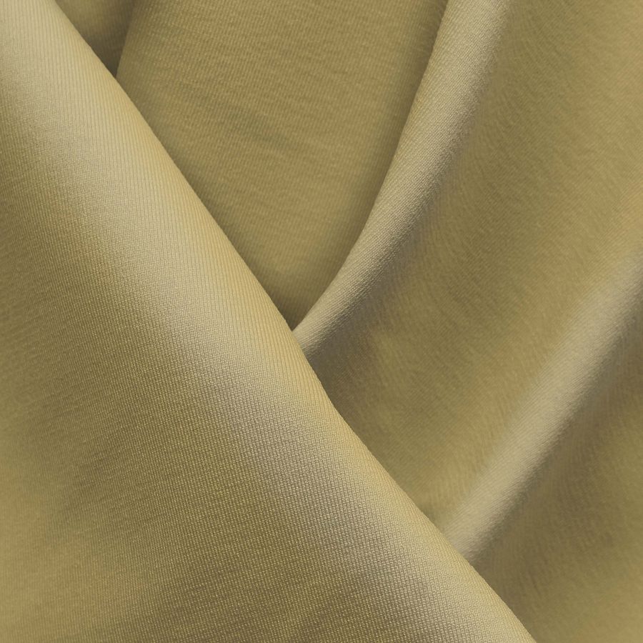 La tela base de este tejido es la Lycra Reciclada - Seal de 230 gr/m2, compuesta por un 75% de poliéster y un 25% de elastano. Su color liso impreso es amarillo viejo, cuyo CMYK es de 12 17 54 1, siendo un tono cálido y suave con un matiz melancólico. Este color secundario combina bien con tonos claros como el blanco y el gris, pero también con colores cálidos y oscuros como el marrón y el verde oliva.