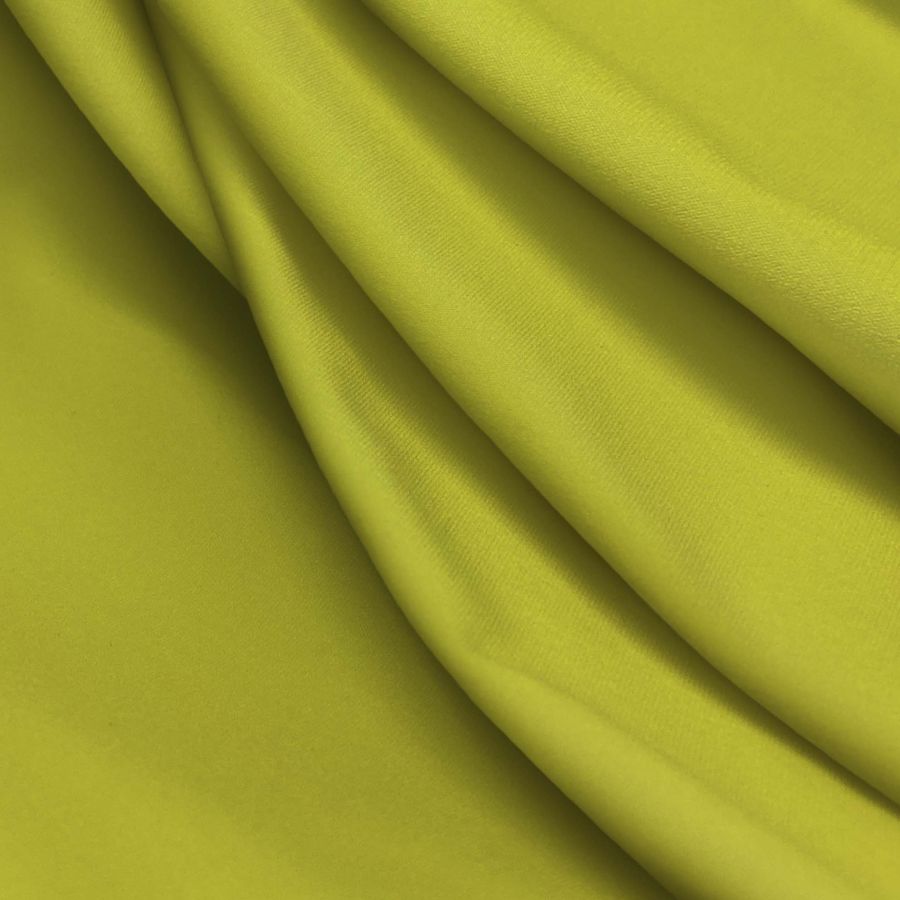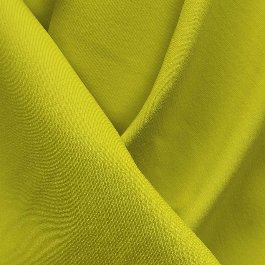 La tela base es Lycra Reciclada - Seal de 230 gr/m2, con un 75% de poliéster y un 25% de elastano. El color liso impreso es un amarillo de tonalidad zinc, con una composición CMYK de 10 0 84 0, lo que hace que tenga una apariencia vibrante y brillante. Este color secundario combina perfectamente con colores más oscuros como el negro, el gris y el azul marino, así como con tonalidades más claras como el blanco y el beige.