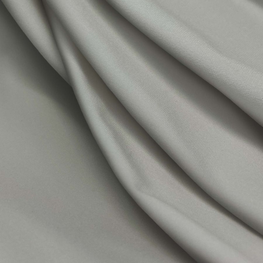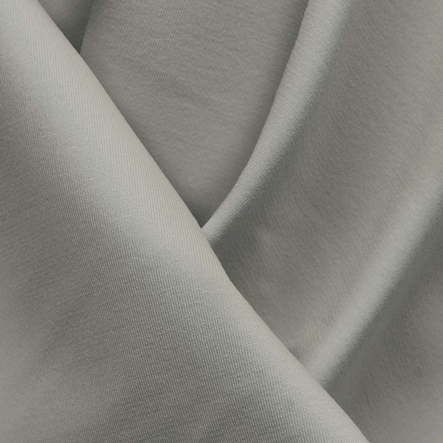 La tela base es una Lycra reciclada de 230 gr/m2 con composición 75% POLIÉSTER y 25% ELASTANO, de textura elástica y tacto suave. El color liso impreso es de un gris pastel con un CMYK de 22 15 24 1. Este color secundario es una mezcla entre el azul y el rosa, lo que le confiere un tono suave y delicado. Combina muy bien con colores neutros como el blanco, el negro, el beige y el gris oscuro.
