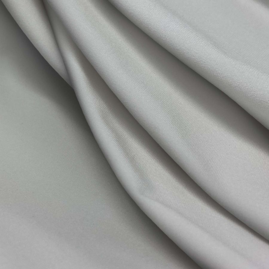 La tela base es la Lycra reciclada Seal de 230 gr/m2, compuesta por un 75% de poliéster y un 25% de elastano, con un ancho de 150 cm. El color liso impreso es Gris Humo Blanco, con una combinación de tintas CMYK de 5 4 4 0. Este color secundario tiene una tonalidad grisácea con un matiz blanquecino, lo que da como resultado un tono neutro perfecto para combinar con otros colores vibrantes y tonos pasteles.