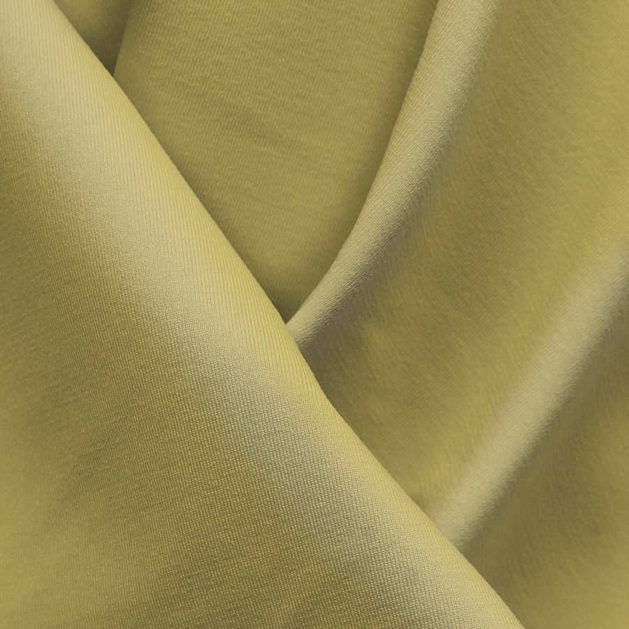 La tela base es Lycra Reciclada - Seal de 230 gr/m2, compuesta por 75% de poliéster y 25% de elastano. El color liso impreso es una combinación de amarillo y crema, con un CMYK de 10 10 59 0. Este color secundario se describe como vibrante y cálido, lo cual lo hace ideal para prendas de ropa que buscan un look alegre y juvenil. También combina bien con tonos azules y verdes, así como con neutros como el blanco o el negro. Es importante destacar que la tela está impresa con el color liso a una sola cara por impresión digital textil y no es un tejido tintado sino impreso por una sola cara.