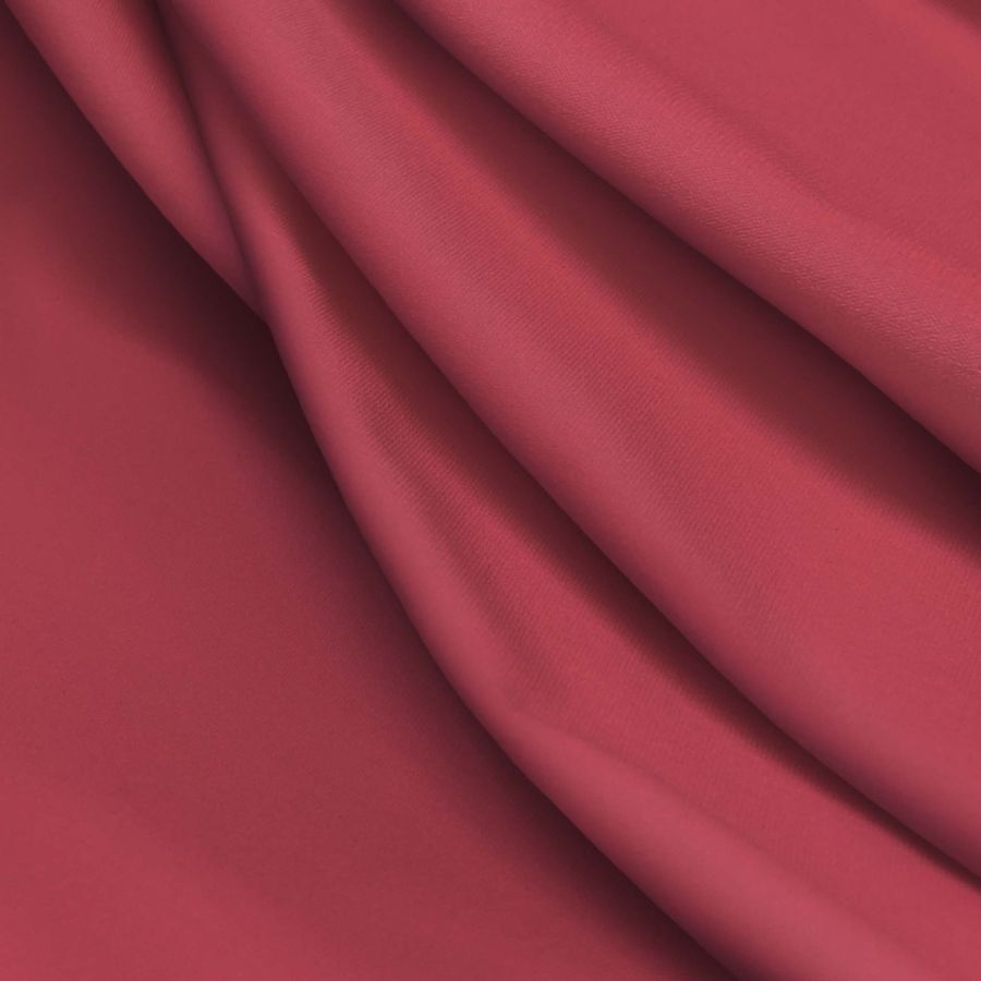 La tela base es Lycra Reciclada - Seal de 230 gr/m2, una tela compuesta por 75% poliéster y un 25% de elastano, con un gramaje de 230 gr/m2 y un ancho de 150 cm. El color liso impreso en el tejido es Rojo Deseo, con un CMYK de 0 87 56 0, que combina perfectamente con tonos cálidos como el naranja y amarillo, y contrasta con tonos oscuros como el negro o el gris. La impresión de este tejido se realiza por una sola cara mediante impresión digital textil.