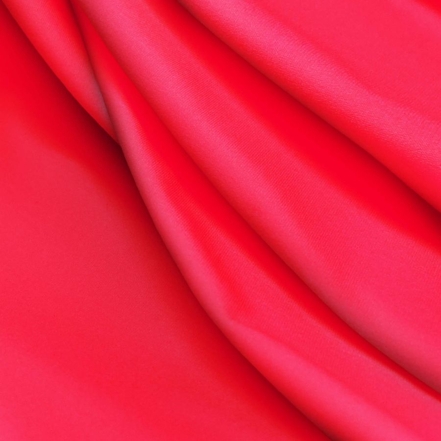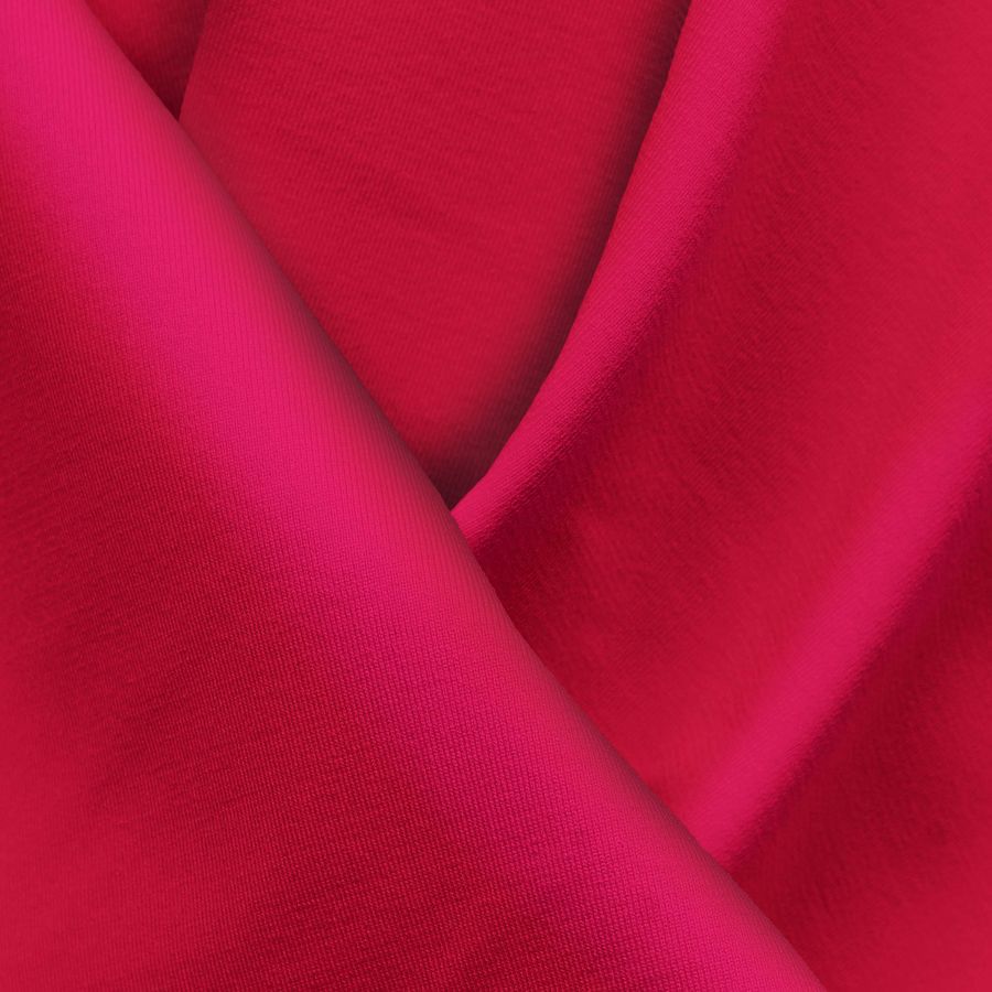 La tela base de Lycra Reciclada - Seal de 230 gr/m2 es una mezcla de poliéster y elastano que le confiere una textura suave y elástica. Su color liso impreso es un rojo intenso y escarlata, con un CMYK de 1 100 76 0 y está impreso a una sola cara por impresión digital textil. Este color secundario es perfecto para crear una imagen impactante y enérgica, y combina bien con otros colores vibrantes como el naranja y el amarillo.