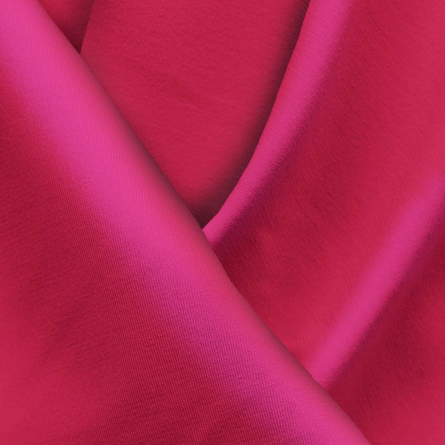 La tela base de este tejido es la Lycra Reciclada - Seal de 230 gr/m2, con una composición de 75% poliéster y 25% elastano, y un gramaje de 230 gr/m2. El color liso impreso es rojo frambuesa, con un CMYK de 0 96 53 0, lo que significa que contiene una gran cantidad de magenta y amarillo, lo que le da un tono vibrante y llamativo. Complementa muy bien con tonalidades turquesa, azul cobalto y verde esmeralda.
