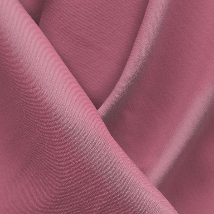 La tela base es la Lycra Reciclada - Seal de 230 gr/m2, compuesta por 75% poliéster y 25% elastano, con un gramaje de 230 gr/m2 y un ancho de 150 cm. El color liso impreso es rojo helado de vainilla, con un contenido de tinta cian de 0, magenta de 56, yellow de 15 y black de 0, representado en el CMYK como 0 56 15 0. Es un color secundario que se combina especialmente bien con blanco y negro, así como con tonos neutros y suaves como beige y gris.
