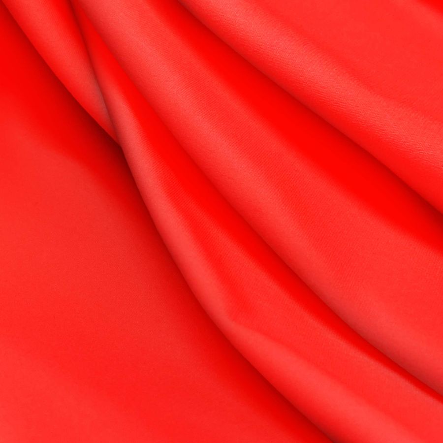 La tela base es Lycra Reciclada - Seal de 230 gr/m2 con una composición de 75% poliéster y 25% elastano, con una textura elástica y resistente al cloro, y con un acabado de protección UV muy alta 50+, lo que la hace perfecta para prendas deportivas y de baño. El color liso impreso en la tela base es Rojo Caramelo, cuyo CMYK es 0 94 92 0, lo que indica que está compuesto por una alta cantidad de magenta y amarillo, lo que le da un tono cálido y vibrante. Este color secundario combina especialmente bien con neutros como blancos y grises, así como con tonos tierra y verdes.