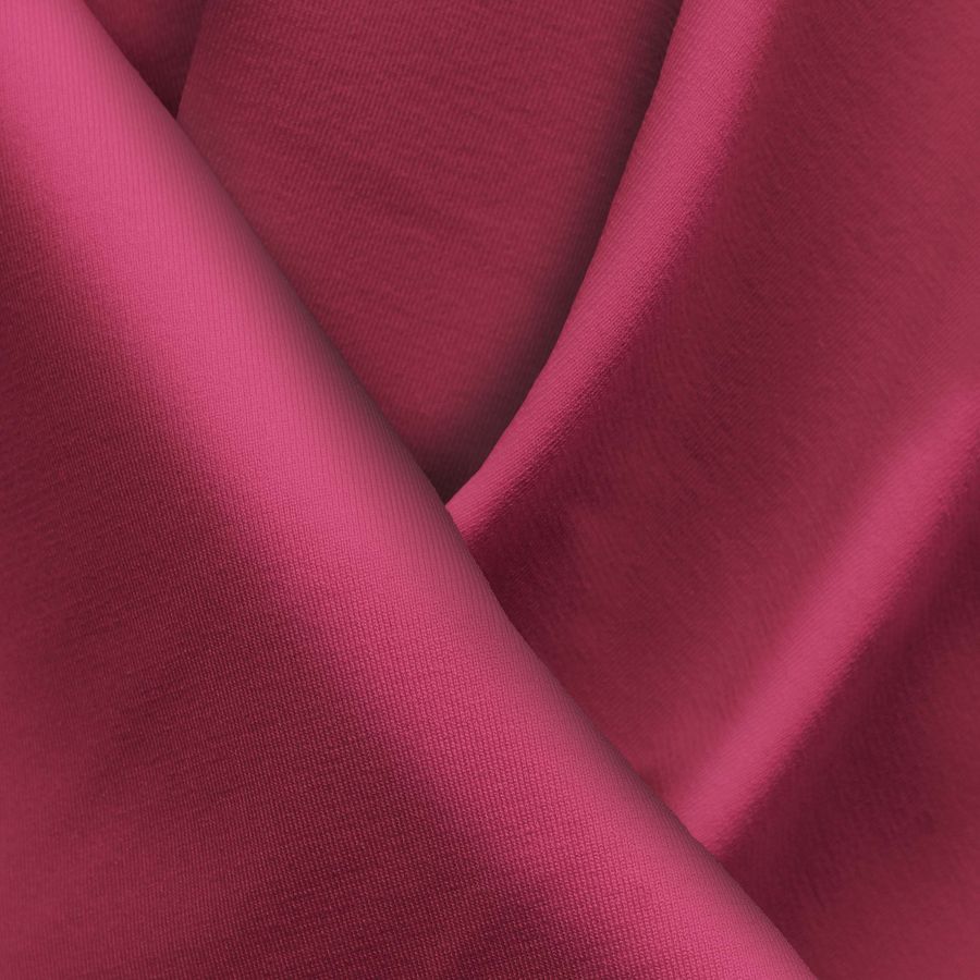 La tela base es la Lycra Reciclada - Seal de 230 gr/m2, compuesta por un 75% de poliéster y un 25% de elastano. Esta tela es elástica y tiene un gramaje de 230 gr/m2. Es de color liso impreso en Rojo Ruby big dip, cuyo CMYK es 26 95 55 24. Este color se caracteriza por ser un rojo intenso con tonalidades cálidas, que se asocian con la pasión y la energía. Combina perfectamente con tonos neutros como el blanco, el negro y el gris, así como con tonos marrones y dorados.