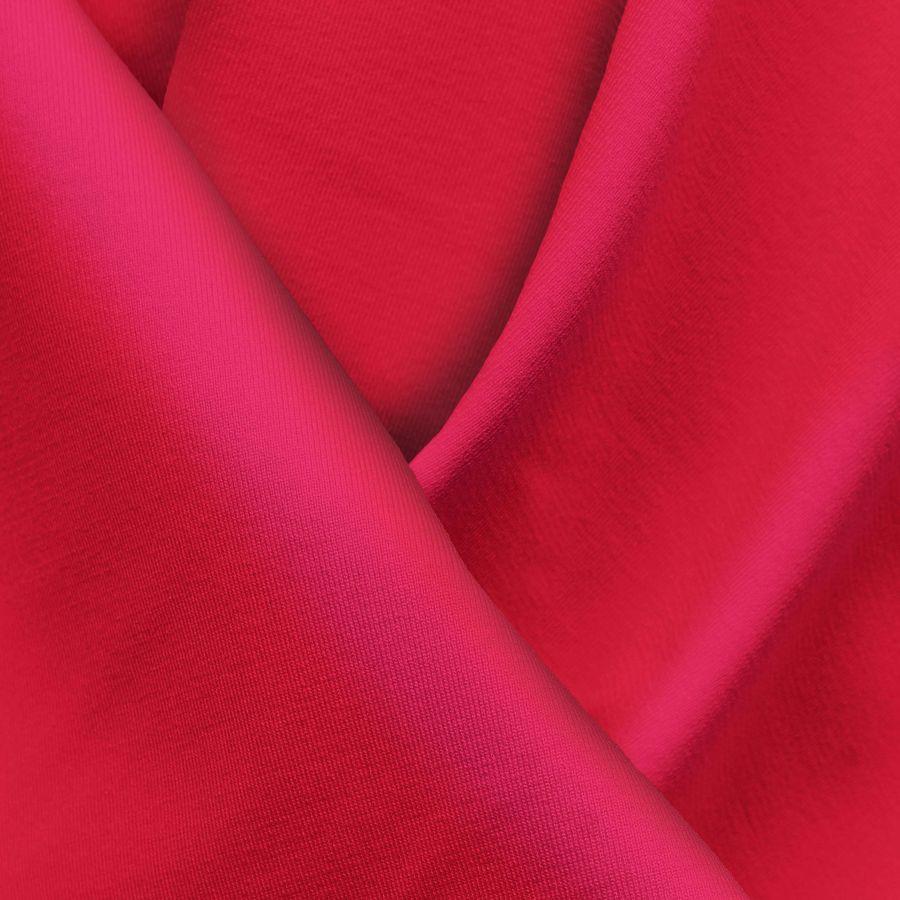 La tela base es la Lycra Reciclada - Seal de 230 gr/m2, con una composición del 75% de poliéster y un 25% de elastano. Su color liso impreso es de un rojo intenso llamado Tractor Rojo, que se obtiene de la combinación de 0% de tinta Cyan, 94% de tinta Magenta, 71% de tinta Yellow y 0% de tinta Black, lo que da un CMYK de 0 94 71 0. Este color es vibrante y llamativo, convirtiéndolo en una opción perfecta para diseños deportivos y de baño. Además, combina muy bien con tonos neutros como el blanco y el negro, así como con colores similares como el fucsia.