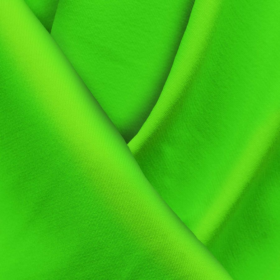 La tela base es la Lycra Reciclada - Seal de 230 gr/m2. El color liso impreso es Verde Arlequín, con un contenido de CMYK de 62 0 100 0. Este color secundario es vibrante y simboliza la frescura, la alegría y la vitalidad. Además, combina muy bien con los tonos amarillo, azul y rosa para crear un diseño armonioso y llamativo. Es importante destacar que el tejido está impreso con el color liso a una sola cara por impresión digital textil, lo que le da una mayor definición y nitidez en la imagen impresa.