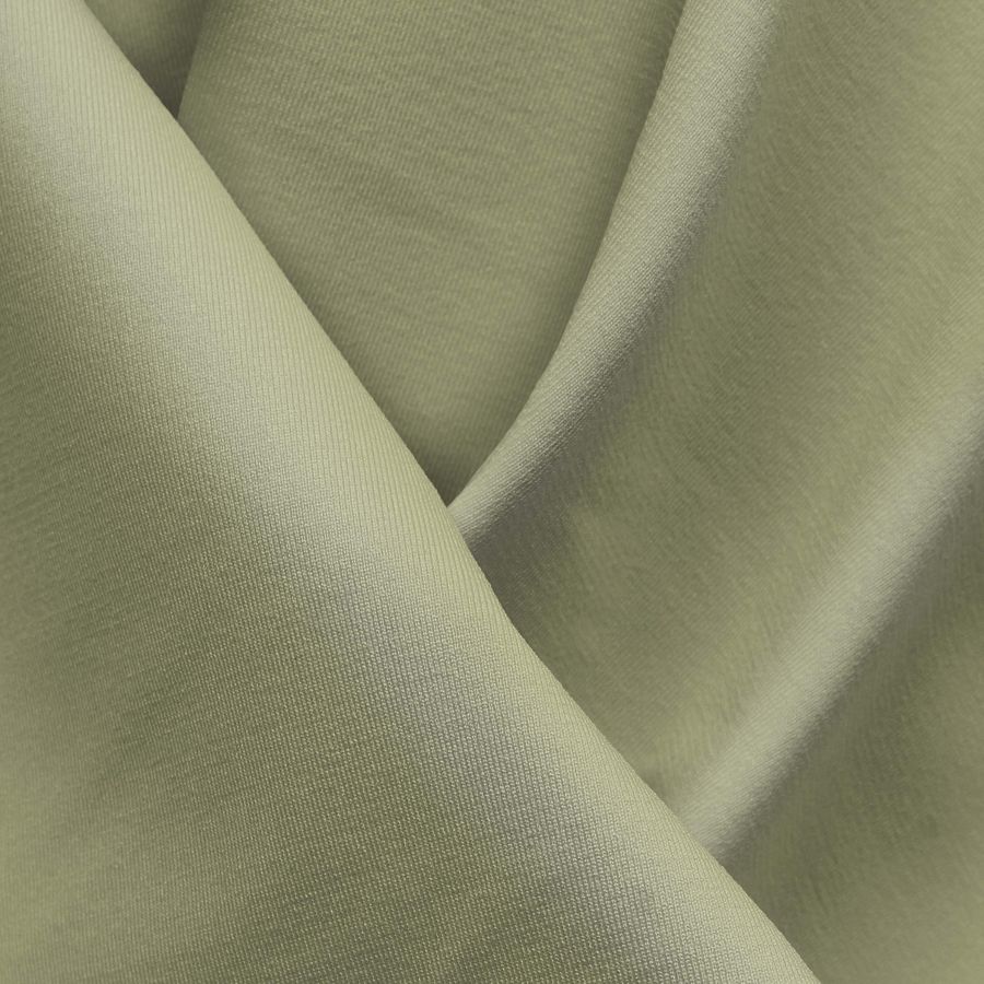 La tela base es Lycra Reciclada - Seal de 230 gr/m2, compuesta por 75% poliéster y 25% elastano, con un gramaje de 230 gr/m2 y ancho de 150 cm. El color liso impreso es Verde,Beige Francés Claro, con un CMYK de 20 9 41 0. Este color se presenta como una tonalidad suave y natural, fácilmente combinable con tonos neutros y tonos tierra.