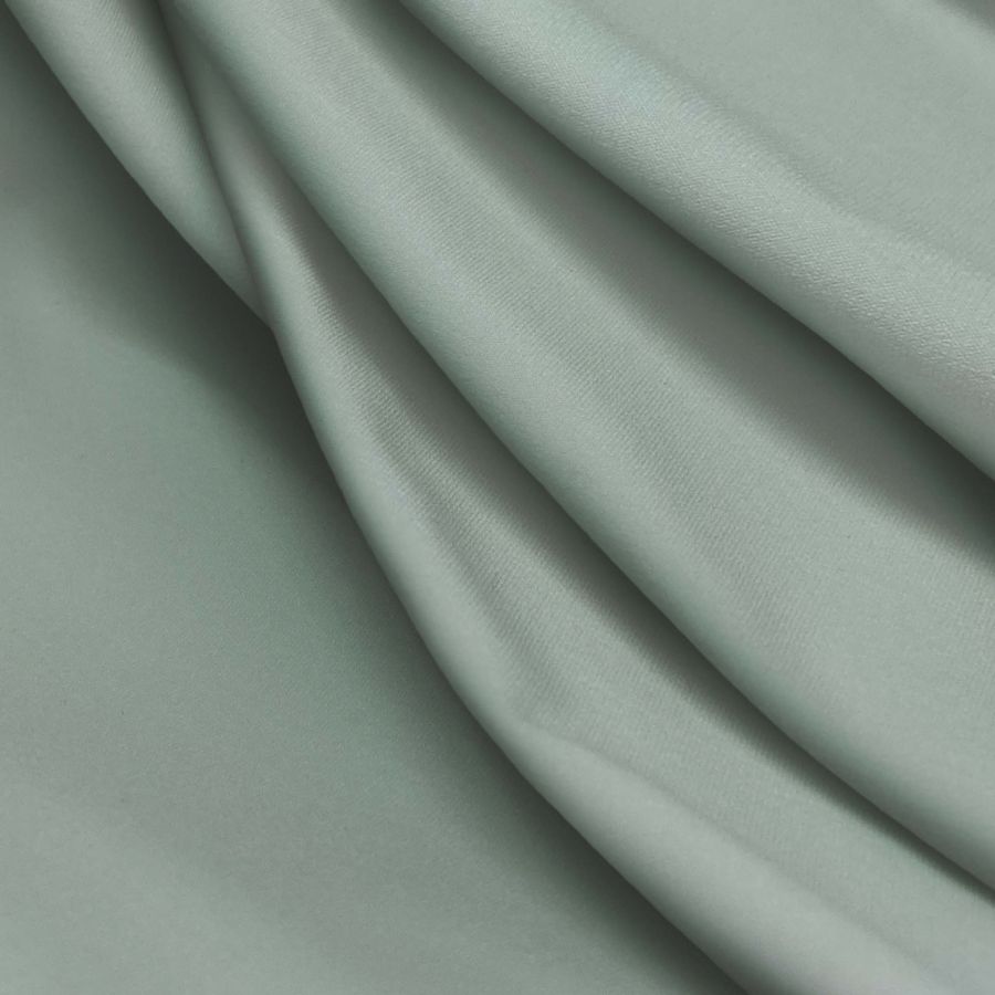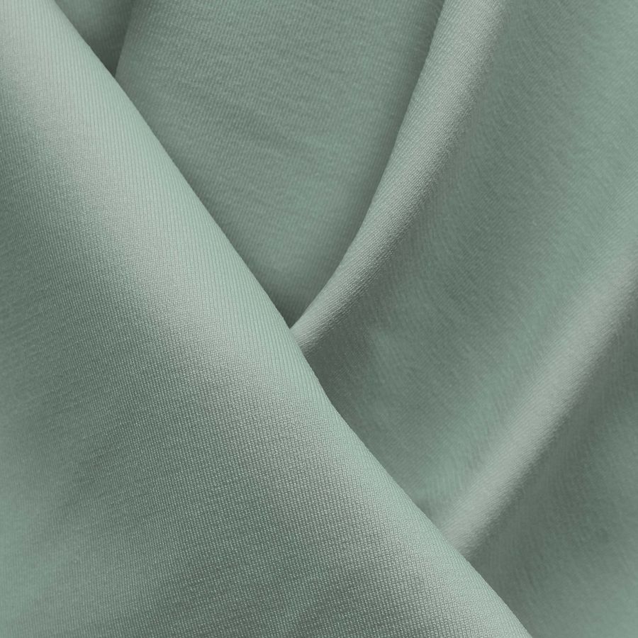 La tela base es la Lycra Reciclada - Seal de 230 gr/m2, compuesta por un 75% de poliéster y un 25% de elastano. El color liso impreso es un suave Verde Espuma de Mar, con unos valores de CMYK de 31 4 25 0. Este color se caracteriza por su suavidad y frescura, que transmite una sensación de tranquilidad y naturaleza. Combina en particular con tonos blancos, crema y tierra, que acentúan aún más su frescura.