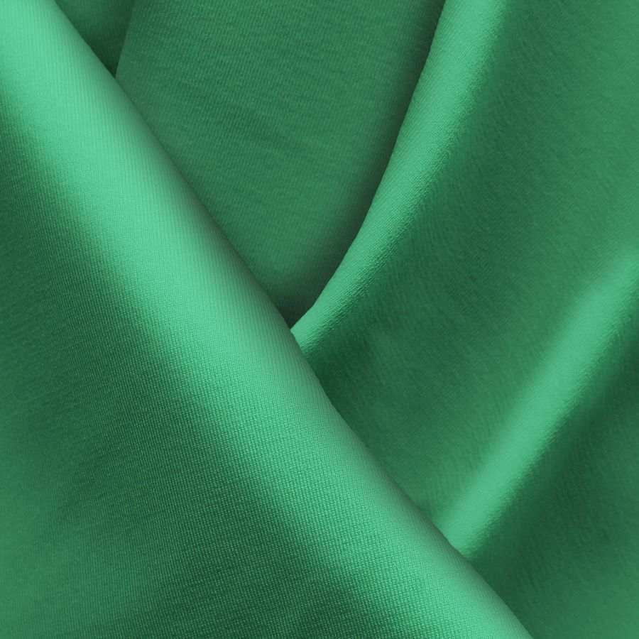 La tela base es la Lycra Reciclada - Seal de 230 gr/m2, una tela de Lycra compuesta por un 75% de poliéster y un 25% de elastano, con un gramaje de 230 gr/m2 y un ancho de 150 cm. El color liso impreso es un verde opaco, indicado por un CMYK de 80 22 78 6, que se combina especialmente bien con tonos marrones y grises. Es importante destacar que el tejido está impreso con el color liso a una sola cara por impresión digital textil, y no es un tejido tintado sino impreso por una sola cara.
