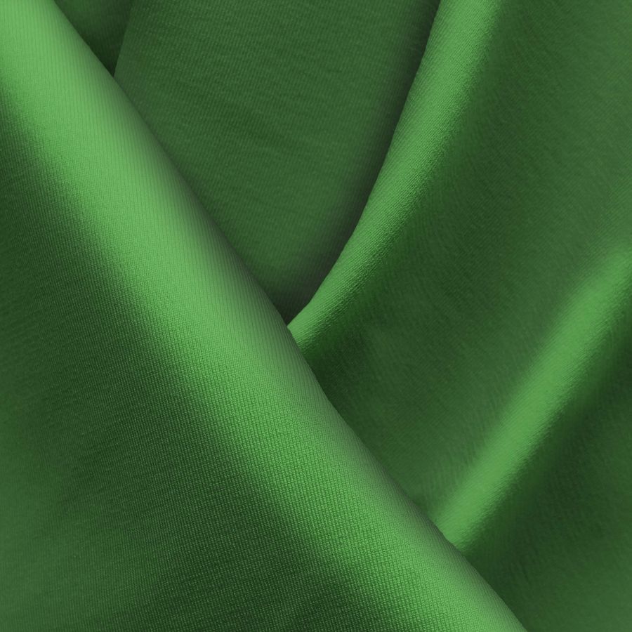 La tela base es Lycra Reciclada - Seal de 230 gr/m2, de composición 75% POLIÉSTER y 25% ELASTANO, con un gramaje de 230 gr/m2 y un ancho de 150 cm. El color liso impreso es un verde-mocasín oscuro, según el CMYK 80 35 99 27. Este color es una mezcla de verde oscuro y marrón, que genera una sensación de equilibrio y serenidad. Combina especialmente bien con tonos neutros como el blanco, el gris y el negro, así como con tonos tierra como el beige y el marrón claro.