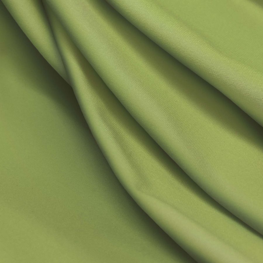 La tela base es la Lycra Reciclada - Seal de 230 gr/m2, compuesta por 75% Poliéster y 25% Elastano, con un gramaje de 230 gr/m2 y un ancho de 150 cm. El color liso impreso es el Verde Periquito, con una mezcla de tinta cyan del 34%, tinta yellow del 71%, y tinta black del 0% según el código CMYK. Este vibrante color representa la vitalidad y energía de la naturaleza, coincidente con la intención sostenible de la tela reciclada.