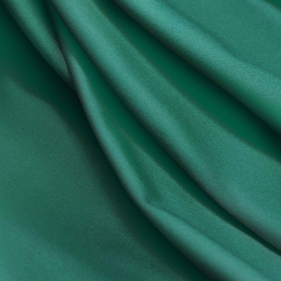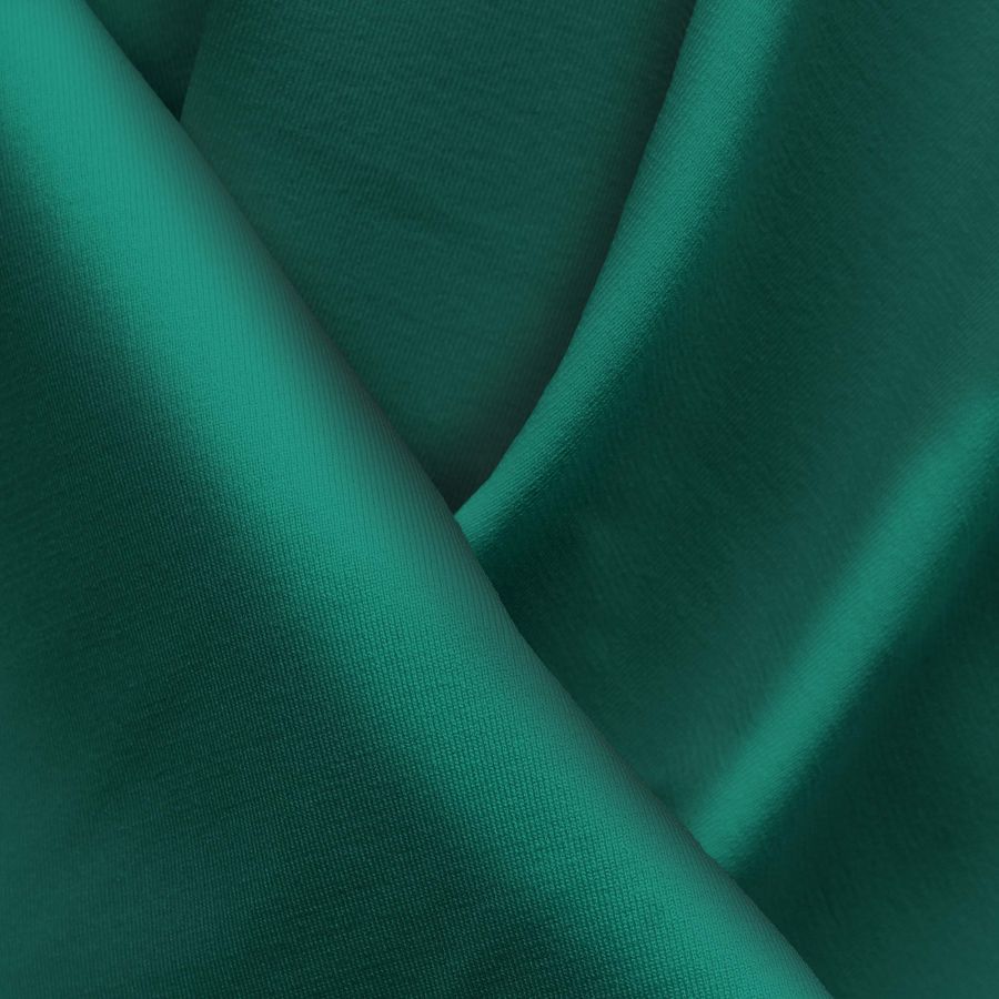 La tela base es Lycra Reciclada - Seal de 230 gr/m2, compuesta por un 75% de poliéster y un 25% de elastano, con un gramaje de 230 gr/m2 y una anchura de 150 cm. El color liso impreso es un verde teal profundo, cuyo CMYK es 90 40 69 44. Se trata de un color vibrante y misterioso que combina perfectamente con colores neutros como el blanco, negro y beige, así como con tonalidades complementarias como el rojo y el naranja.