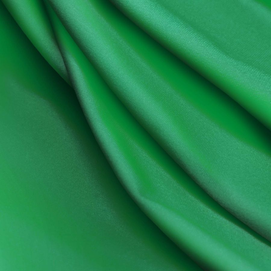 La tela base es la Lycra Reciclada - Seal de 230 gr/m2, compuesta por 75% poliéster y 25% elastano, con un gramaje de 230 gr/m2 y un ancho de 150 cm. El color liso impreso en esta tela es un verde Cadmio, con una combinación de tintas cyan, magenta, yellow y black en el CMYK 89 31 90 23. Este color secundario es simbólico y representa la naturaleza, la frescura y el crecimiento. Combinado con otros colores similares, como el azul agua, el verde hierba o el amarillo limón, crea una sensación de armonía y calma en la persona que lo observa.