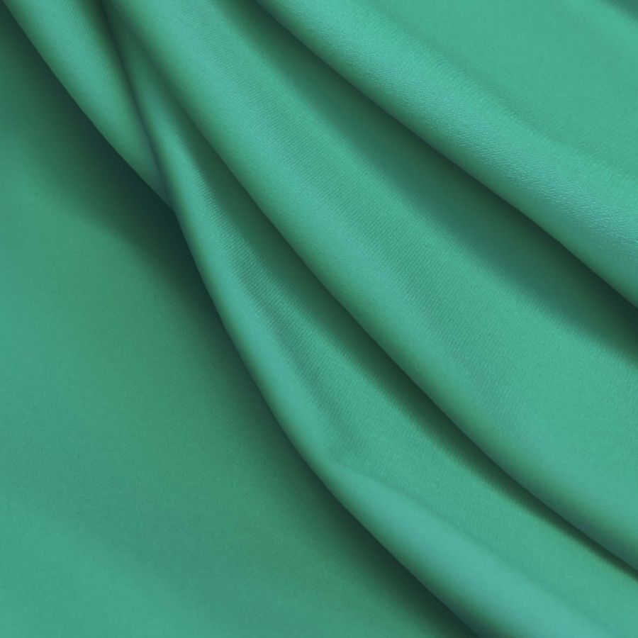 La tela base es Lycra Reciclada - Seal de 230 gr/m2 en color liso impreso en Verde Eucalipto con un tono cromático de CMYK: 63 0 48 0. Este color se presenta como una tonalidad fresca y natural, que evoca la naturaleza. La Lycra Reciclada junto al color Verde Eucalipto crean un tejido que transmite calidad y sostenibilidad por sus componentes y tono.