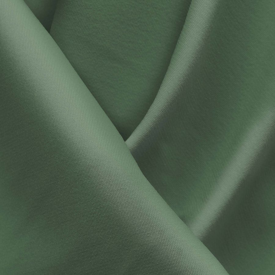 La tela base es Lycra Reciclada - Seal de 230 gr/m2, compuesta por 75% POLIÉSTER y 25% ELASTANO, con un gramaje de 230 gr/m2 y un ancho de 150 cm. El color liso impreso en esta tela es un verde hiedra, cuyo CMYK es 57 26 57 8, logrando un acabado resistente al cloro y con una protección UV muy alta 50+. Este color se combina perfectamente con tonos naturales como el beige o el marrón, así como con colores más vibrantes como el amarillo, el naranja o el azul.