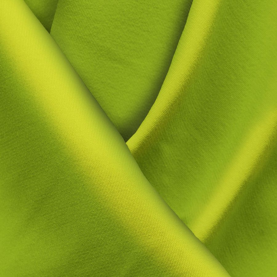La tela base es Lycra Reciclada - Seal de 230 gr/m2, con un ancho de 150 cm. El color liso impreso es Verde Iguana, con un CMYK de 48 3 100 0. Este color se presenta como un verde brillante y vivo, con un toque tropical. Combina muy bien con colores neutros como blanco, gris y negro, así como con tonos más vibrantes, como rojo o amarillo.