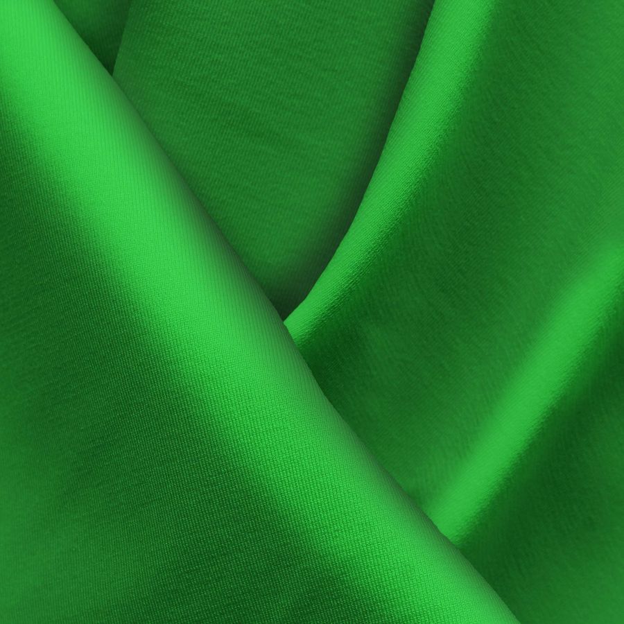 La tela base es Lycra Reciclada - Seal de 230 gr/m2, compuesta por 75% de poliéster y 25% de elastano, con un gramaje de 230 gr/m2 y un ancho de 150 cm. El color liso impreso es verde rana, el cual se refleja en el CMYK 84 18 100 5. Este color presenta tonalidades verdes y amarillas, con un toque de negro para dar profundidad. Complementa perfectamente con tonalidades tierra y beiges, así como con tonos más vibrantes como el rosa y el morado.