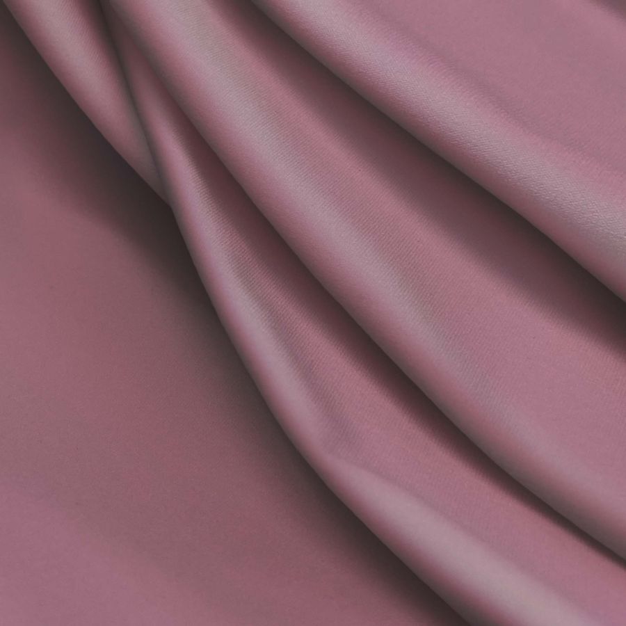 La tela base es Lycra Reciclada - Seal de 230 gr/m2, de composición 75% poliéster y 25% elastano. Está teñida de rojo puce, cuyo CMYK es 19 54 25 3, lo que resulta en un color rojo vibrante con una ligera mezcla de púrpura. Este color se combina bien con tonos pasteles, grises y blancos, pero también puede ser complementado por colores más audaces como el verde y el azul.