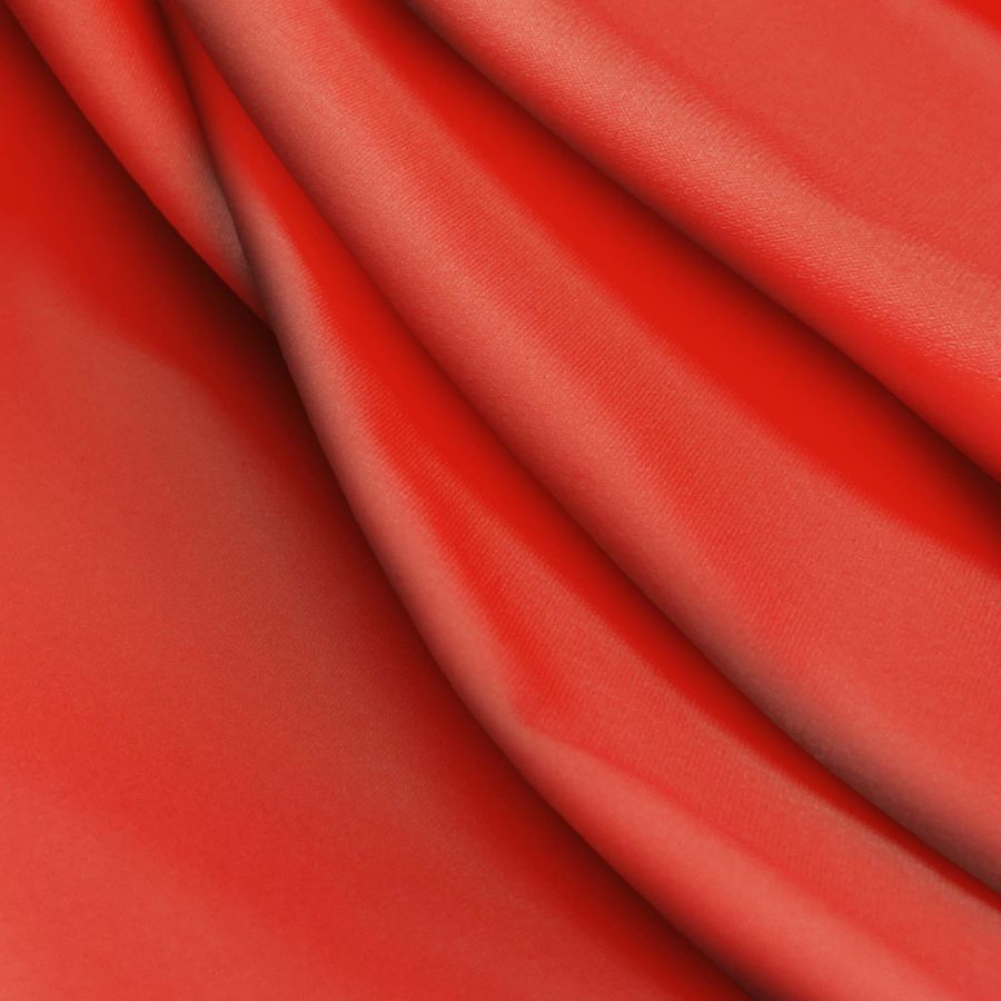 La tela base es Lycra Reciclada - Seal, con una composición del 75% de POLIÉSTER y del 25% de ELASTANO, con un gramaje de 230 gr/m2 y un ancho de 150 cm. El color liso impreso es Rojo Tomate, con un CMYK de 24 96 100 21, impreso por una sola cara mediante impresión digital textil. Esta tela aporta características como textura, tacto y elasticidad, así como un acabado resistente al cloro y protección UV muy alta 50+.