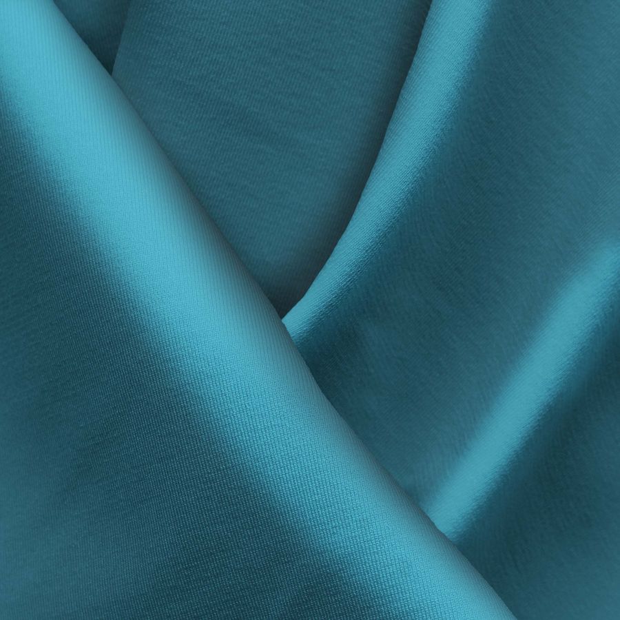 La tela base es Lycra Reciclada - Seal de 230 gr/m2, una lycra compuesta por un 75% de poliéster y un 25% de elastano, con un gramaje de 230 gr/m2 y un ancho de 150 cm. El color liso impreso es Azul Agua con un CMYK de 82 39 37 21. Este color se caracteriza por ser un azul pastel suave, relajante y fresco, que transmite armonía, serenidad y tranquilidad. Es un color que combina muy bien con tonos neutros como el blanco o el gris, colores claros como el rosa o el lila, y tonos más fuertes como el naranja o el amarillo.