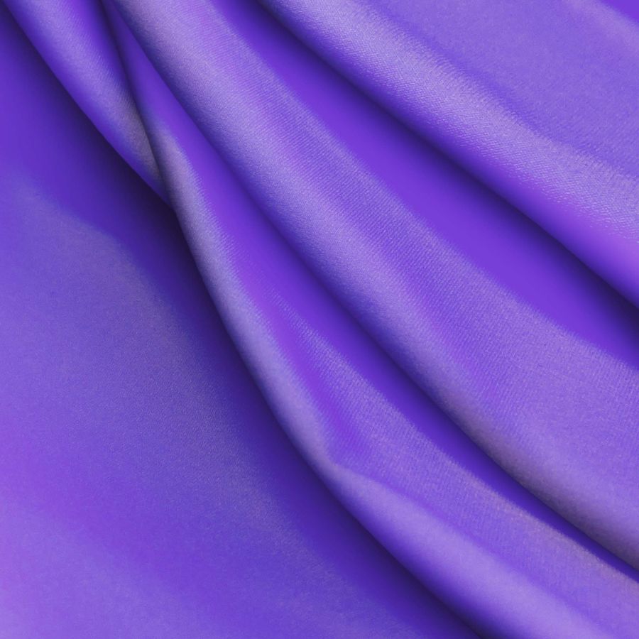 La tela base es la Lycra Reciclada - Seal de 230 gr/m2, compuesta por un 75% de poliéster y un 25% de elastano. El color liso impreso es de un tono Morado, específicamente el Corazón Púrpura, con un contenido de 77% de tinta cian y 82% de tinta magenta en el CMYK, sin ningún contenido de tinta amarilla ni negra. El resultado es un color vibrante y llamativo que combina perfectamente con colores oscuros como el negro, marrón o gris, pero también con tonos pastel como el rosa o el celeste.