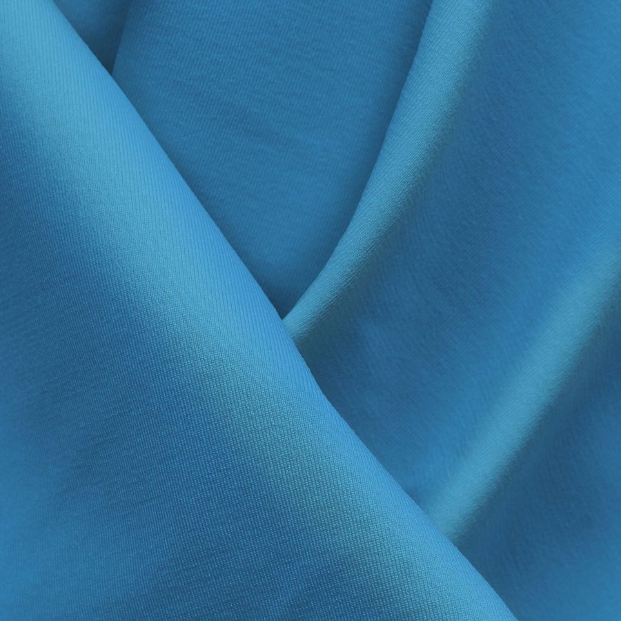 La tela base es Lycra Reciclada - Seal de 230 gr/m2 en color liso Azul Bebé, con un contenido de CMYK de 64 15 0 0. Este color se caracteriza por ser suave y tranquilo, inspirando paz y calma. Se combina bien con tonos neutros como el blanco, el gris y el beige, o con tonos cercanos como el rosa pastel o el celeste claro. La tela está impresa con el color liso a una sola cara por impresión digital textil, lo que significa que el color se imprime directamente sobre la superficie del tejido.