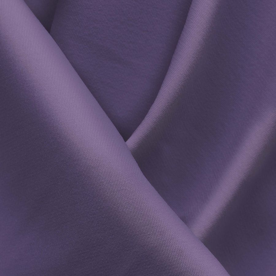 La tela base es una Lycra Reciclada - Seal de 230 gr/m2, compuesta por un 75% de poliéster y un 25% de elastano, con un ancho de 150 cm y un gramaje de 230 gr/m2. El color liso impreso es Azul Campánula, con un CMYK de 57 59 16 2, que transmite un mood relajado y fresco. Este hermoso color azul secundario se mezcla perfectamente con otros colores, como los tonos verdes, los morados y los grises.