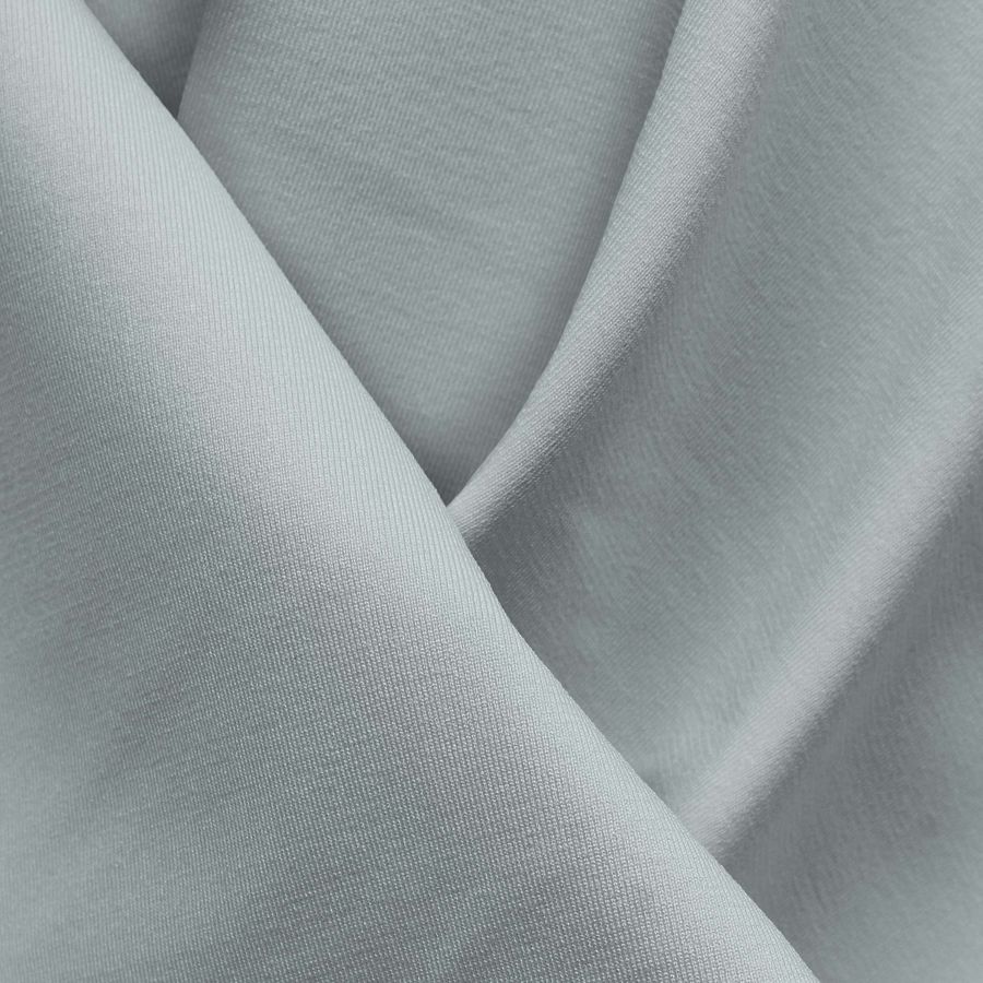 La tela base es la Lycra Reciclada - Seal de 230 gr/m2, compuesta por un 75% de poliéster y un 25% de elastano, con un gramaje de 230 gr/m2 y un ancho de 150cm. El color liso impreso es de un tono azul escarcha, con un CMYK de 15-2-8-0 y ha sido impresionado digitalmente en una sola cara. Esta tonalidad es un color secundario con un matiz mezcla de azul y verde, que combina especialmente bien con colores fríos como el blanco, el gris o el violeta.