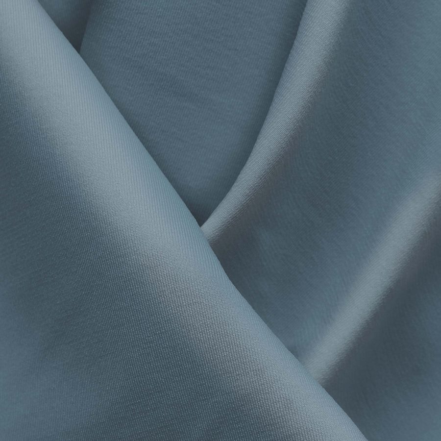La tela base de este tejido es Lycra Reciclada - Seal de 230 gr/m2, con una composición de 75% poliéster y 25% elastano y un gramaje de 230 gr/m2. El color liso impreso es Azul Grisáceo, determinado por un CMYK de 53 26 24 5. Este color azulado tiene una textura y tacto elásticos, es resistente al cloro y tiene un factor de protección UV muy alto de 50+. Se puede combinar con otros tonos azulados, grises y blancos para crear un efecto degradado.