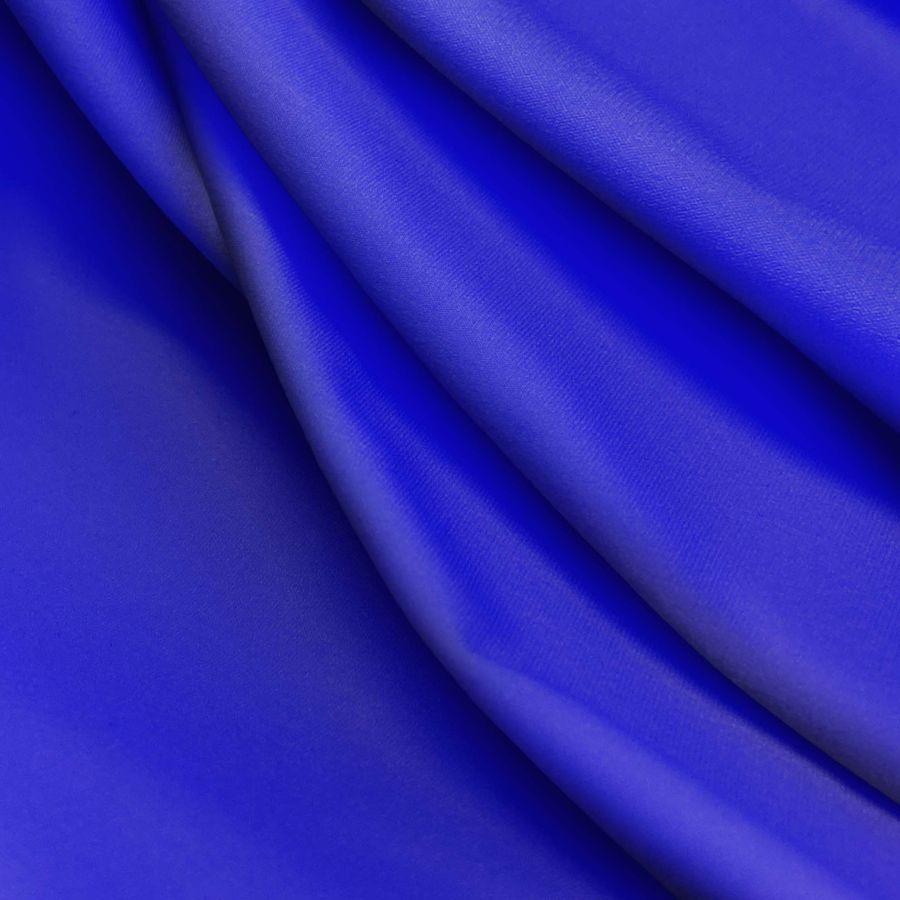La tela base se trata de Lycra Reciclada - Seal de 230 gr/m2, compuesta por 75% Poliéster y 25% Elastano, con un gramaje de 230 gr/m2 y un ancho de 150cm. El color liso impreso es uniforme en azul y se obtiene mediante una combinación de tintas CMYK: 100 de cyan, 93 de magenta, 19 de yellow y 4 de black. Este color secundario tiene una connotación simbólica de calma y tranquilidad, que se transmite en prendas deportivas o de baño. Combinado con otros colores puede generar un aspecto vibrante y atractivo, como en un diseño multicolor que incluya tonos de amarillo, rojo o naranja. Por otro lado, es importante destacar que la tela está impresa a una sola cara por impresión digital textil, lo que la hace ideal para su uso en prendas deportivas que requieran una alta resistencia a la decoloración.
