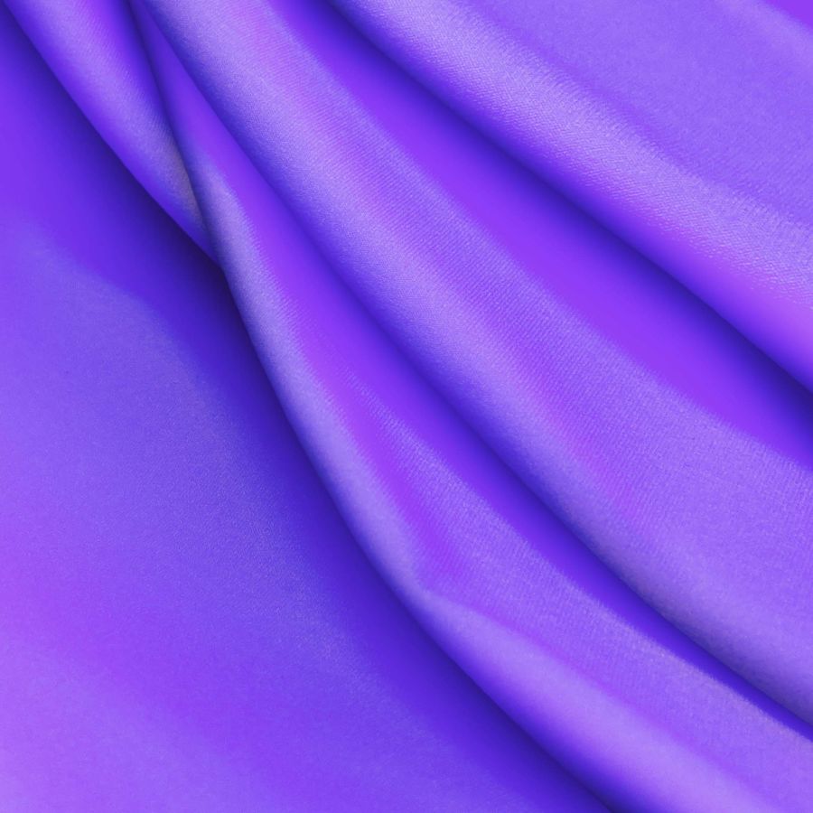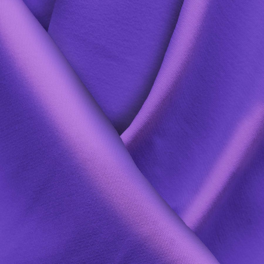 La tela base es Lycra Reciclada - Seal de 230 gr/m2, con composición de 75% poliéster y 25% elastano. Su ancho es de 150 cm y se presenta en color liso impreso en tonalidades de azul y azul uva con un CMYK de 79 77 0 0. Este color impreso es vibrante y atractivo, con un toque moderno. El azul uva es un color secundario que se asocia con la creatividad y la sofisticación, y combina especialmente bien con tonos de amarillo, verde y rosa. La tela está impresa con el color liso a una sola cara por impresión digital textil, lo que significa que el color se transfiere directamente a la tela.