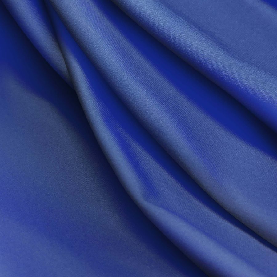 La tela base es Lycra Reciclada - Seal de 230 gr/m2, compuesta por 75% POLIÉSTER y 25% ELASTANO, con un gramaje de 230 gr/m2 y un ancho de 150 cm. El color liso impreso es Azul Vaquero, con una tinta Cyan al 100, Magenta al 88, Yellow al 30 y Black al 15. Su CMYK es 100 88 30 15. Este color simboliza la profundidad y la estabilidad, mientras que su técnica de impresión SUBLIMACIÓN (POLIÉSTER) le da un aspecto fresco y moderno. Además, este color combina especialmente bien con tonos tierra y dorados, perfecto para lograr un efecto fresco y relajado en cualquier prenda.