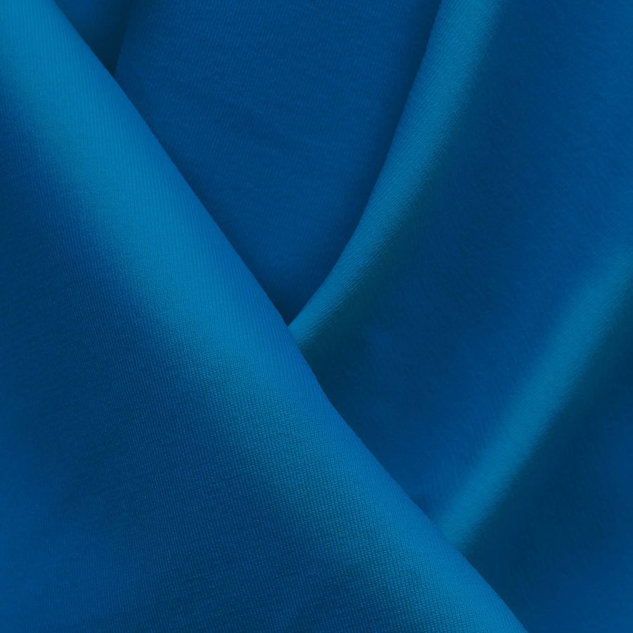 La tela base es la Lycra Reciclada - Seal de 230 gr/m2 en color liso impreso en tonalidades de azul azur, con un CMYK de 87 49 0 0. Este color nos transmite calma y serenidad, evocando sensaciones de paz y relajación. El color azul se relaciona con la estabilidad y el equilibrio, siendo ideal para prendas de ropa de deporte y trajes de baño. Además, el azul combina perfectamente con tonos blancos o negros, creando un contraste perfecto y elegante.